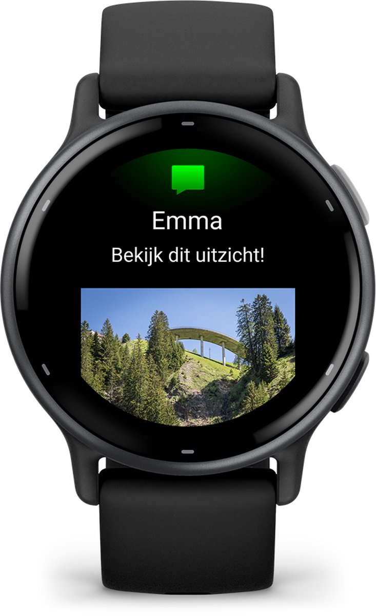 De VivoActive 5 is een prima smartwatch, zolang je niet wilt bellen met je pols. Je krijgt Garmin Pay (contactloos betalen), Muziek (Spotify, Deezer), Notificaties (op Android kun je reageren met standaardberichten), en de veiligheidsfuncties (Incident Detectie). Die laatste vereisen wel dat je je telefoon bij je hebt.